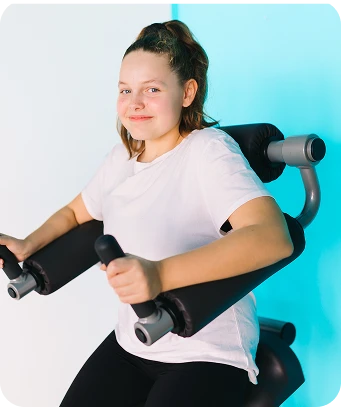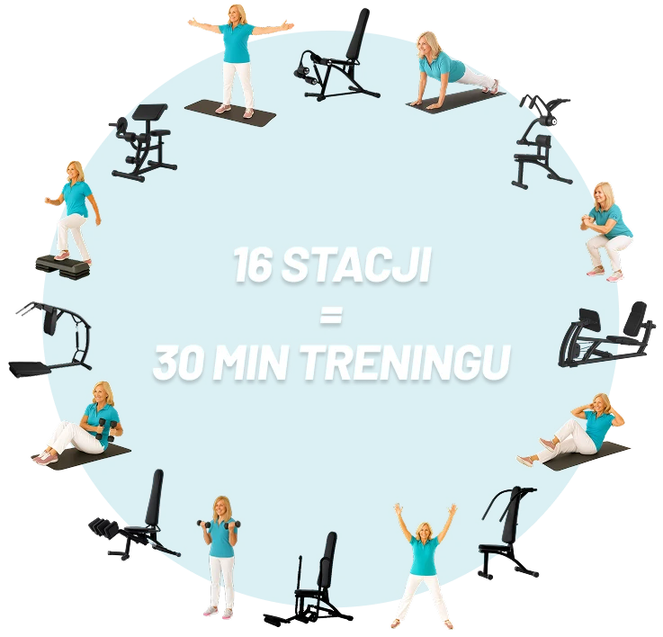 U nas ćwiczysz na łagodnych dla stawów maszynach hydraulicznych, przeplatanych ćwiczeniami wzmacniającymi.